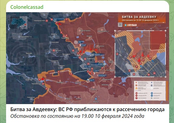 Между тем эксперт Центра военно-политической журналистики Борис Рожин указывает, что ВС России приближаются к рассечению Авдеевки. Наши наступают в частном секторе в окрестностях СНТ "Ивушка", продвинулись в лесопосадках, закрепились на улице Чистякова в районе Авдеевской автобазы. А это, по словам эксперта, ещё сильнее приближает их "к фактическому рассечению города надвое".