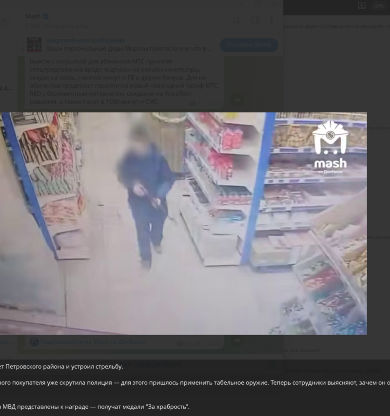 Информацию о стрельбе в магазине подтвердили официально. А ещё глава Донецкой Народной Республики (ДНР) Денис Пушилин уже объявил, что сотрудники МВД по ДНР, оперативно задержавшие автоматчика, приставлены к награде.