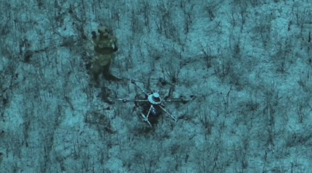 Обессиленный беспилотный летательный аппарат наш парень взгромоздил на спину и пошёл к своим - в укрепрайон.