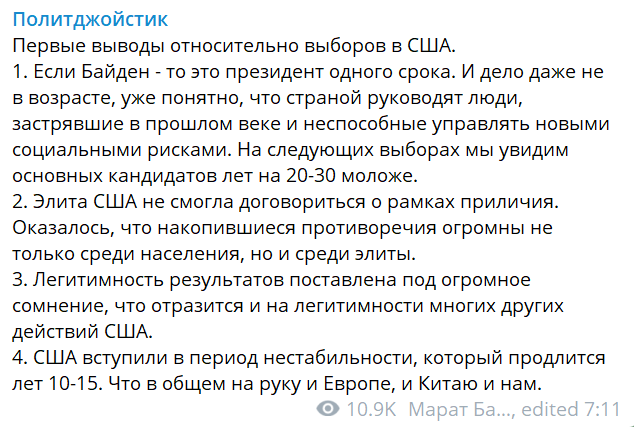 Фото: скриншот https://t.me/politjoystic