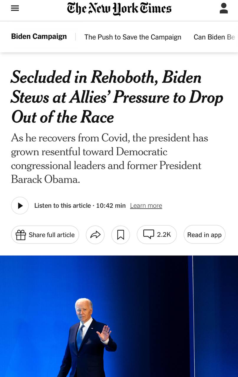 Напомним, что после провальных дебатов с Трампом от Байдена начали требовать выйти из предвыборной гонки и уступить место более молодому кандидату. А после позорного выступления президента США на саммите НАТО давление лишь усилилось.