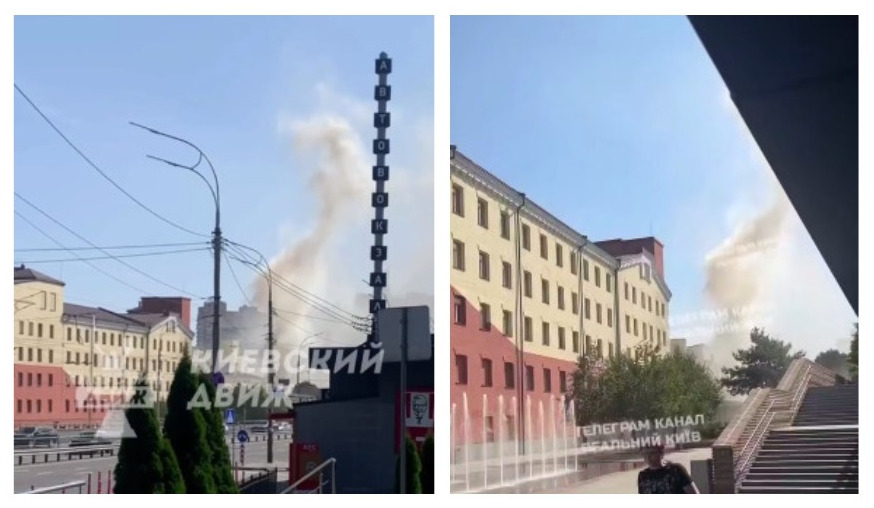 На кадрах, появившихся в соцсетях, видно, как столб белого дыма поднимается в небо.