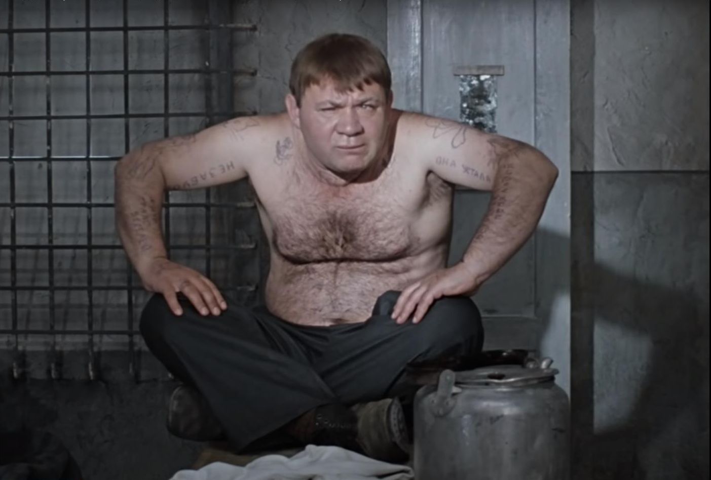 Кого же нам напоминает Лёва* в тюремной камере… А вот кого! Кадр из фильма "Джентльмены удачи" (1971, режиссёр Александр Серый)