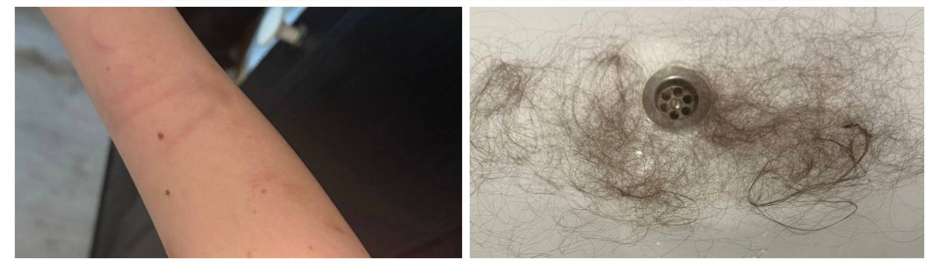 Бэлла пришла в кафе и ушла без волос. На фотографиях, появившихся в Сети, видны ссадины на руке, виске, кровь на белке глаза.