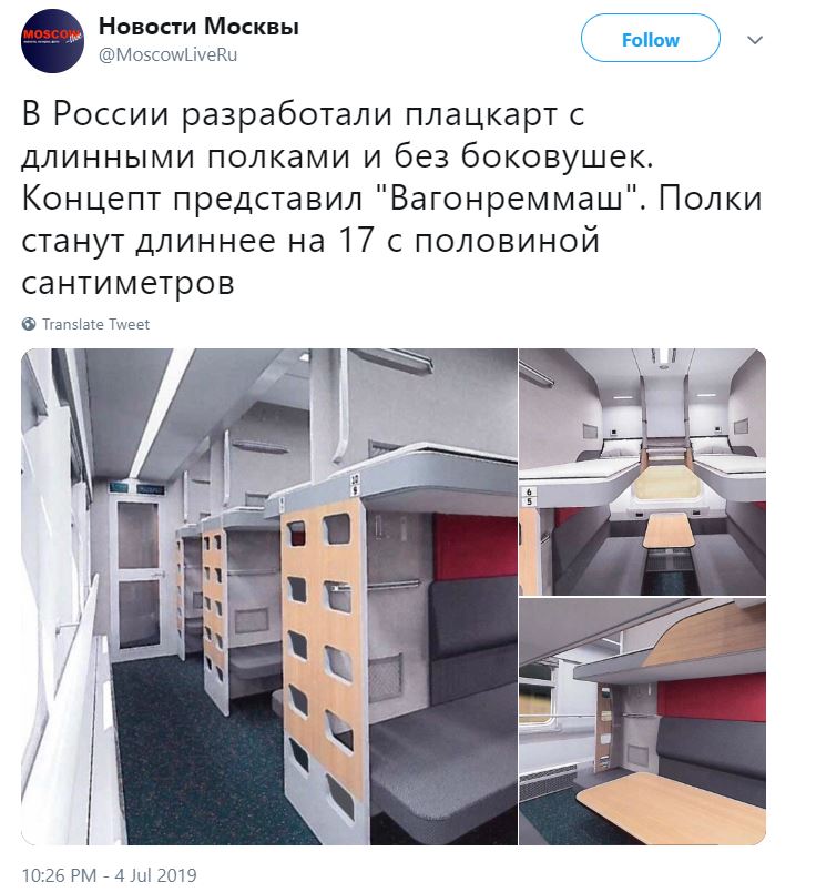 Боковушки у туалета уходят в прошлое: представлен концепт нового плацкарта с длинными полками