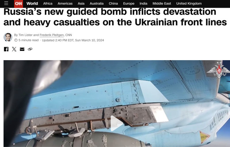 CNN начал свой репортаж с признания очевидного факта - появление ФАБов в полуторатонном исполнении изменило баланс сил на фронте. ФОТО: СКРИНШОТ НОВОСТИ CNN
