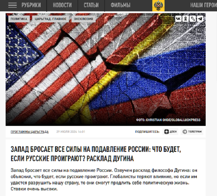 Запад бросает все силы на подавление России: Что будет, если русские проиграют? Расклад Дугина Фото: Царьград