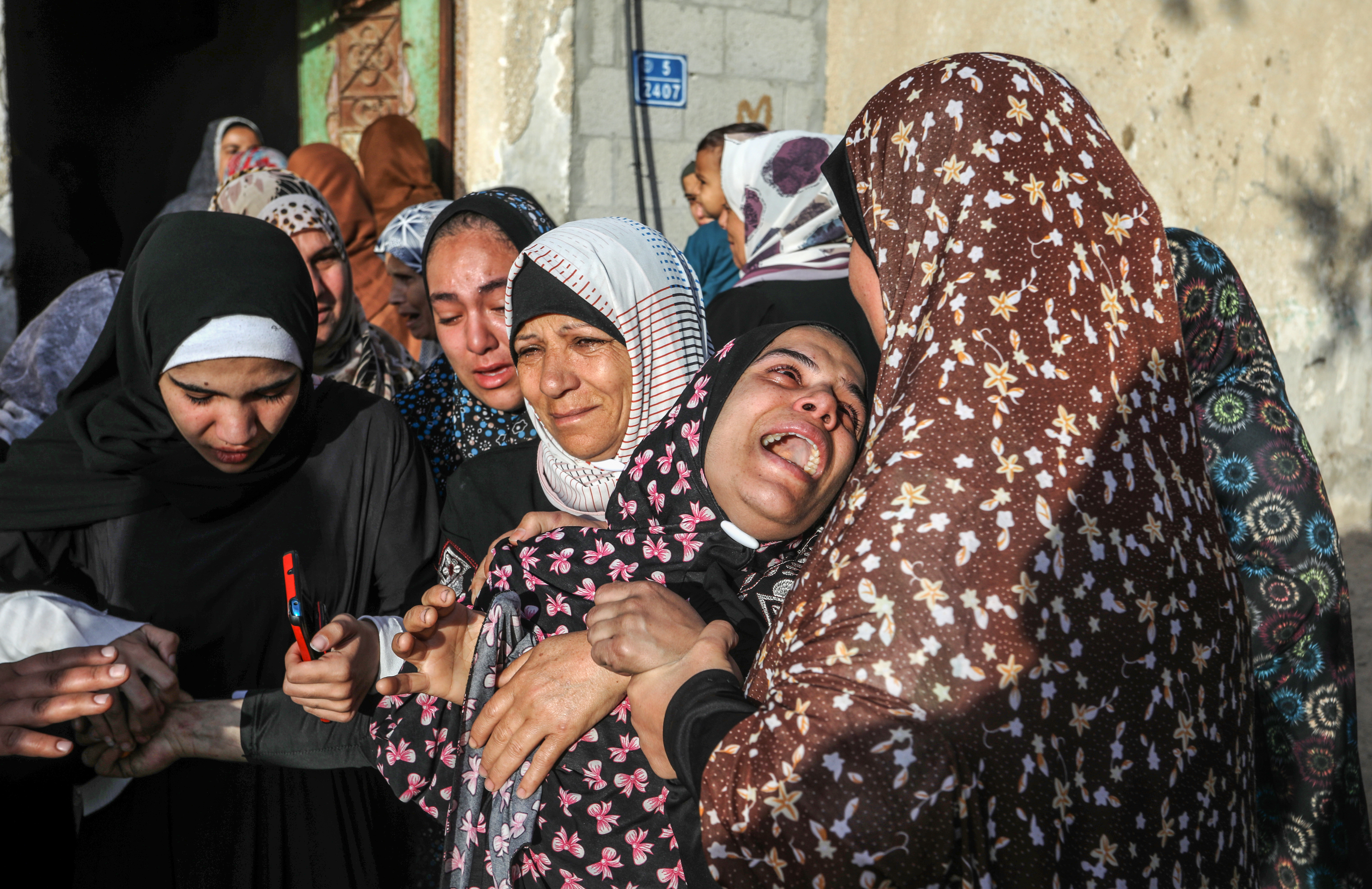 Женщина реагирует на то, как люди стоят среди обломков разрушенного здания после израильской бомбардировки в Хан-Юнисе. По данным агентства УКГВ ООН, с 7 октября израильские атаки уничтожили более 41 000 единиц жилья и повредили около 222 000 единиц жилья в секторе Газа. Фото: Abed Rahim Khatib/dpa