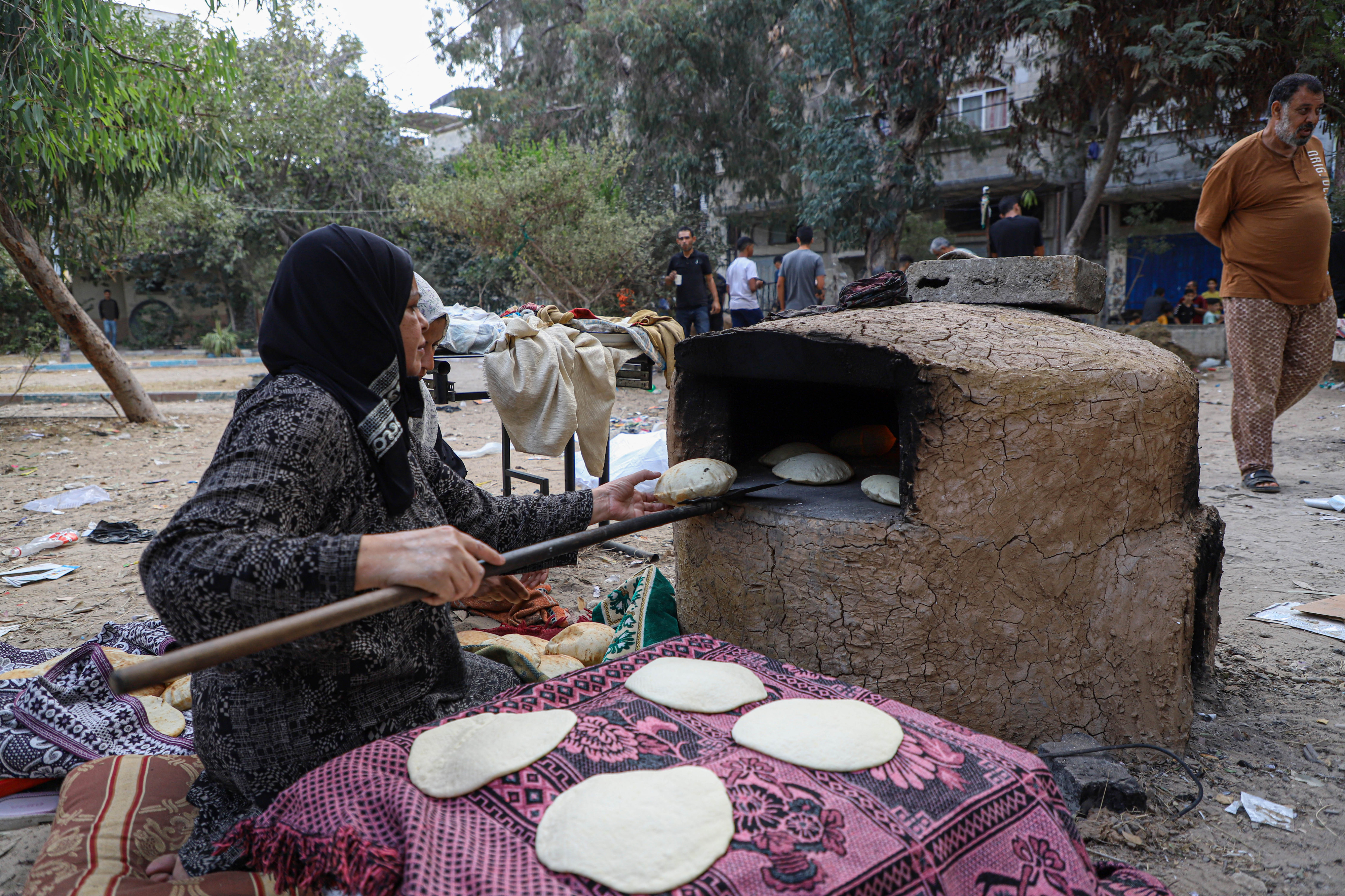 Палестинцы лепят глину и строят традиционные печи Табун. Некоторые продают их за 25 долларов, чтобы собрать хоть какие-то деньги. По данным ООН, как минимум 80 процентов населения сектора Газа испытывало нехватку продовольствия ещё до начала атак 7 октября. Фото:Rizek Abdeljawad/XinHua