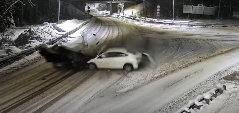 Один из последних эпизодов обернулся трагедией. Так, таксист в Ленинградской области, уходя от погони ДПС, в лобовую столкнулся с "Жигулями". Водитель Hyundai пытался уйти от полицейского преследования в посёлке Сосново. На кадрах с места происшествия видно, как летящую на скорости иномарку занесло на снегу, и она впечаталась в лоб едущей навстречу машине.