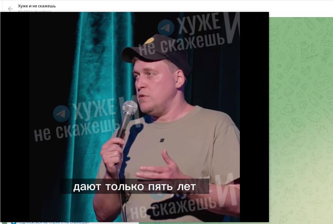 В России больше не могу [выступать]. У нас новый закон - только за слова "нет войне" тебя могут отправить в тюрьму на семь лет… Это интересно, потому что за изнасилование дают только пять лет. <…> Намного легче найти того, кто поддерживает войну [так западная пропаганда называет СВО], и изнасиловать его. Больше удовольствия, но меньше срок в тюрьме…