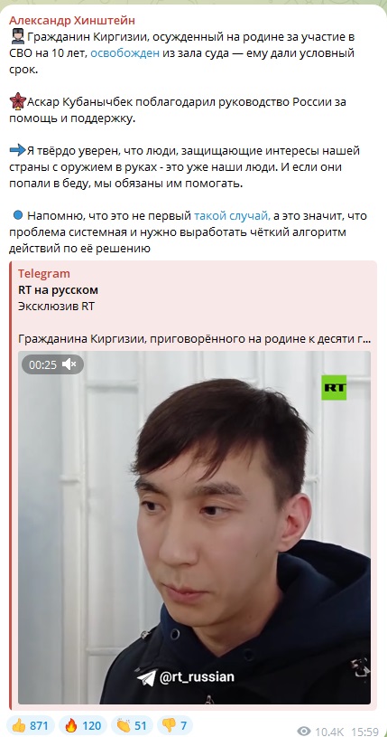 "Большое спасибо России!": Участнику СВО в родной Киргизии дали 10 лет тюрьмы. Но всё изменилось