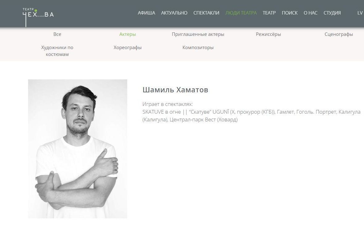 Шамиль Хаматов в составе труппы Рижского русского театра. Скриншот: интернет сайт www.mct.lv