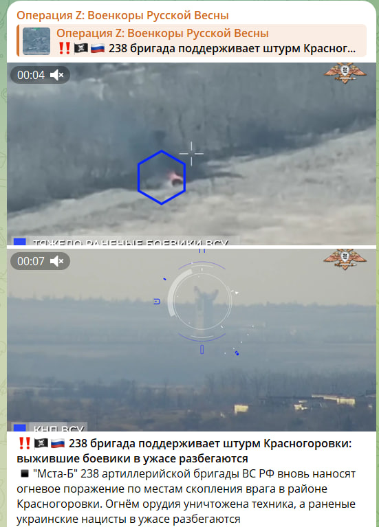 Также появилась информация, что 238-я бригада ВС РФ поддерживает штурм Красногоровки.