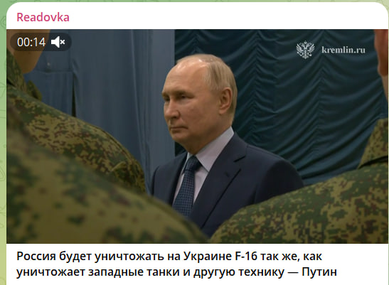По данным TГ-канала Readovka, в ходе беседы президент отметил, что если F-16 будут применяться против ВС РФ с аэродромов третьих стран, они станут для РФ законной целью. Возможные поставки истребителей F-16 Украине не поменяют ситуацию на поле боя.