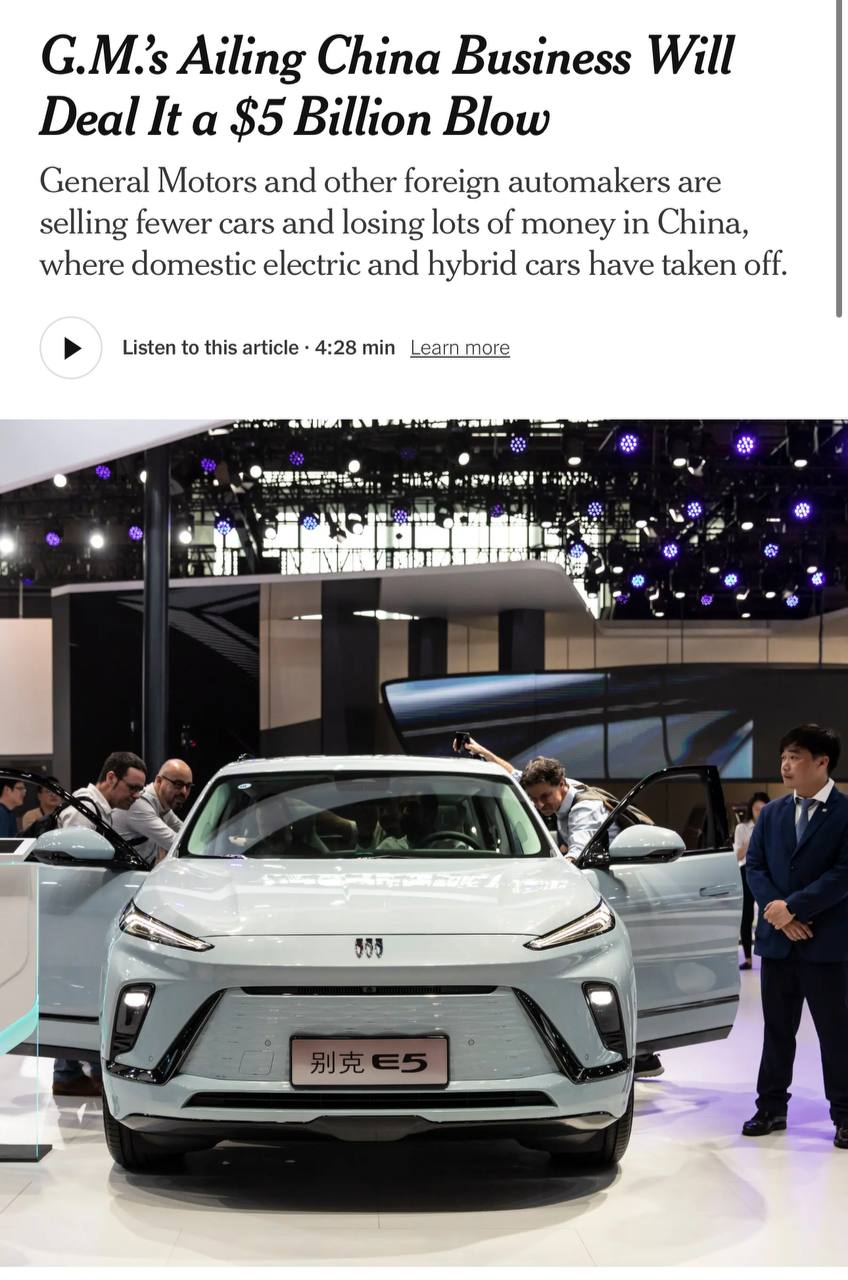 General Motors потеряет 5 миллиардов долларов из-за падающих продаж в Китае на фоне роста китайских автопроизводителей, пишет NYT.