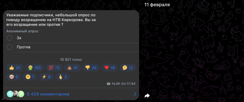 Впрочем, вскоре после "голой вечеринки" Филипп Киркоров покидает Россию, якобы продаёт свою недвижимость в Америке, а затем возвращается и получает предложение работать на НТВ. Выглядит всё это очень странно. Виталий Бородин уверен, что без учёта мнения общественности телеканал может столкнуться с серьёзными протестами и даже петициями о смене руководства.