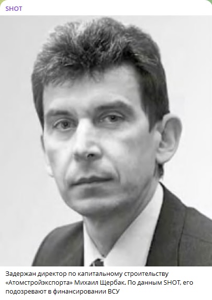 Теперь же Михаила Щербака, в обязанности которого входила организация строительства атомных электростанций, подозревают в финансировании ВСУ. "Росатом" активно содействует следственным мероприятиям, сообщила пресс-служба госкорпорации.