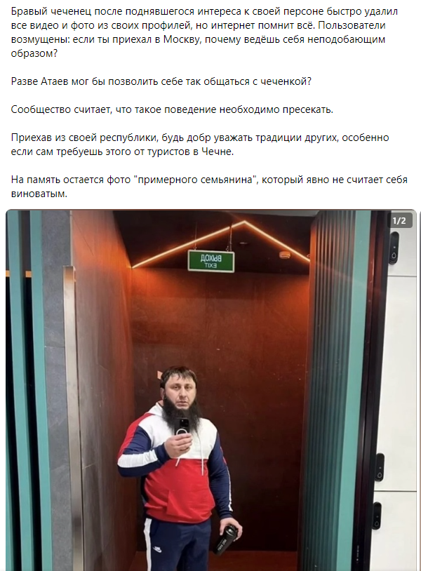 Напомним, что недавно антигероем Рунета оказался некий Висхан Атаев. Приехав в Москву, чеченец злоупотребил гостеприимством русских. Вместо того чтобы вести себя, как и подобает гостю, скромно и достойно, он занялся оскорблением местных девушек.