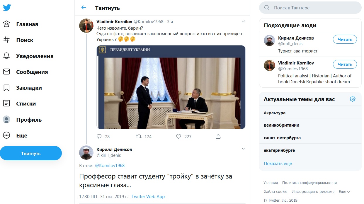 "Чего изволите, барин?" Судя по фото, возникает закономерный вопрос: и кто из них президент Украины?" - смеется над фото в Twitter историк и политэксперт Владимир Корнилов.