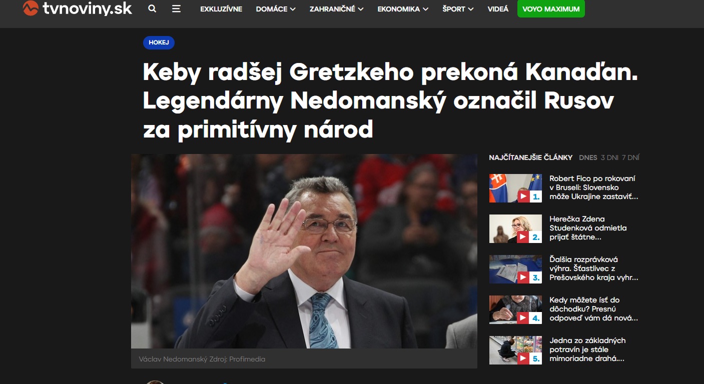Чемпион мира по хоккею 1972 года в составе команды Чехословакии Вацлав Недоманский в интервью, данном iDNES.cz, выразил негативное мнение о русских.