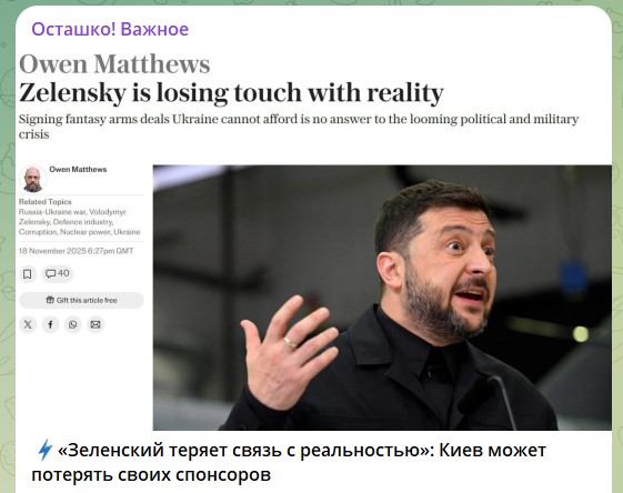 Западные СМИ выдают заголовки всё страшнее и страшнее для Зеленского – сгущают тучи. Пишут о магическом мышлении и кошмарах.
