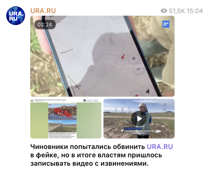 В понедельник, 22 апреля, журналисты URA.RU показали размытую свалку у деревни Воронина Ишимского района Тюменской области. Власти посёлка информацию опровергли, назвав публикацию фейком.