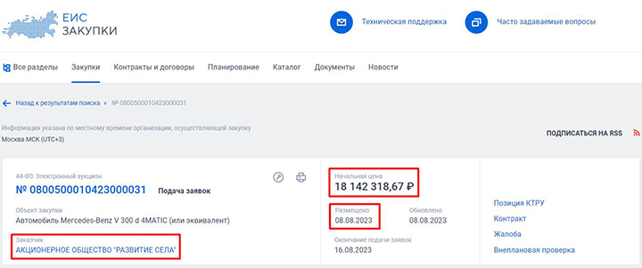 В тот же день та же структура разместила заявку на закупку автомобиля Меrсеdes-Веnz V 300 d 4МАТIС с начальной ценой 18,1 млн рублей. Зачем скромному региональному акционерному обществу такие дорогие автомобили? К слову, не можем не упомянуть о такой характерной детали. В закупке иномарка обозначена с добавлением русских букв: МеГсеdes-ВеПz. Досадная опечатка или кто-то просто не хочет привлекать внимания бдительных журналистов, забивающих в поисковик слово Меrсеdes?