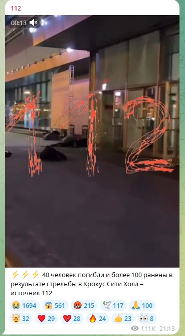 Сегодня вечером в концертном зале "Крокус Сити Холла" началась стрельба. По словам очевидцев, всё произошло перед концертом группы "Пикник". В Сети уже разошлись кадры с места происшествия. На записи слышна автоматная очередь.