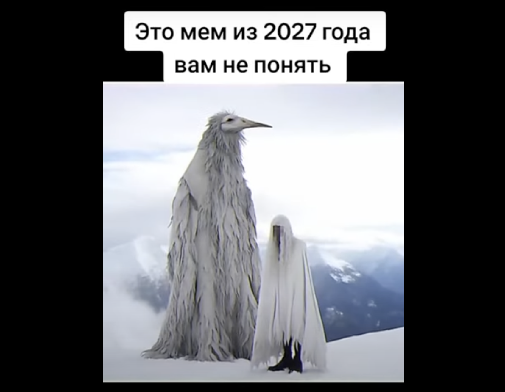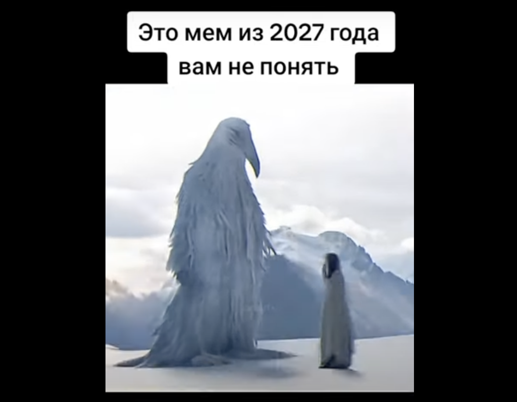 Фотография с гигантской птицей среди снегов, названная "Мем из 2027 года", стала объектом внимания пользователей социальных сетей. После распространения снимка в интернете соцсети заполонили загадочные ролики с теориями заговора.