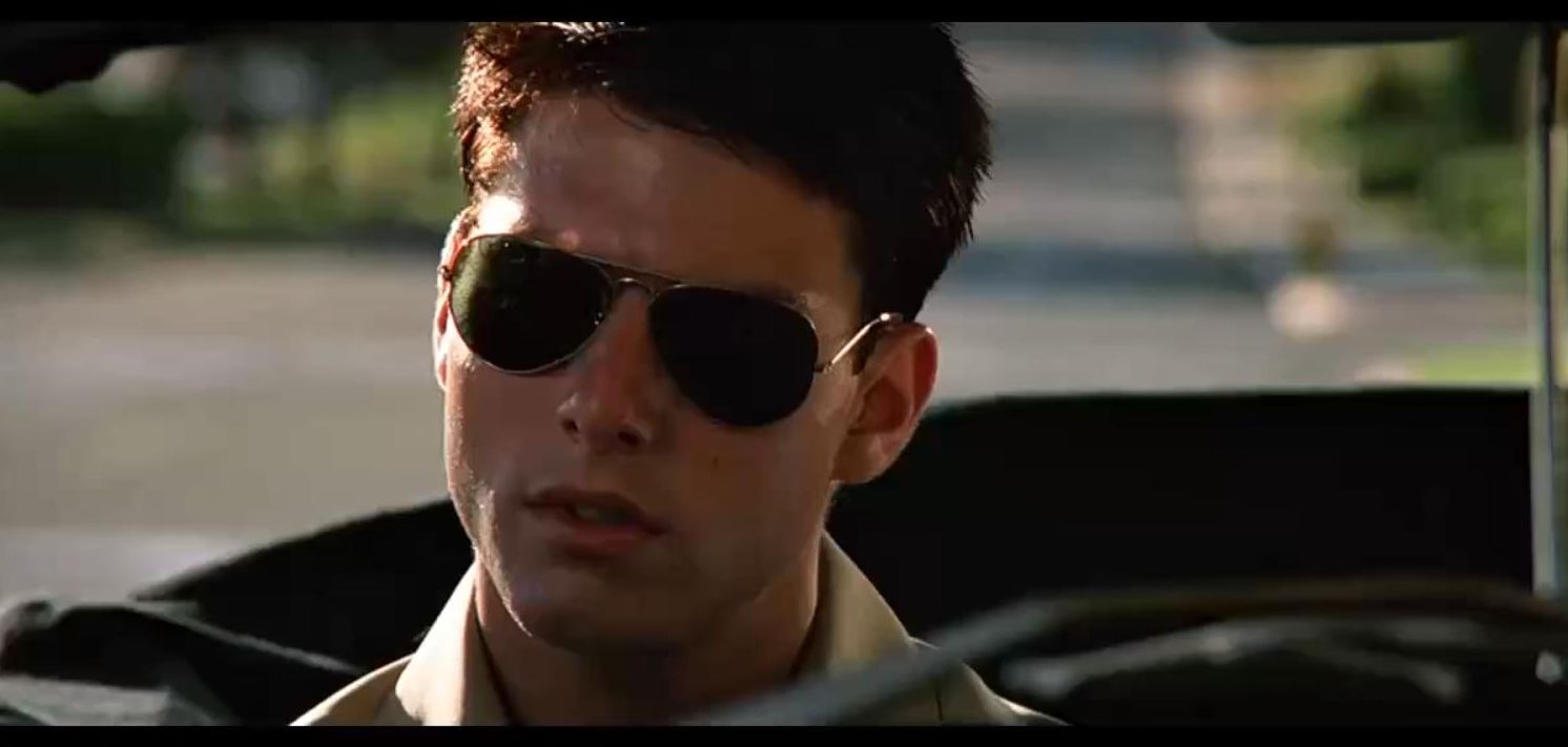 Похож ли Макрон в очках на Тома Круза в очках – решайте сами… Кадр из фильма "Лучший стрелок" (1986, режиссёр Тони Скотт, Paramount Pictures).