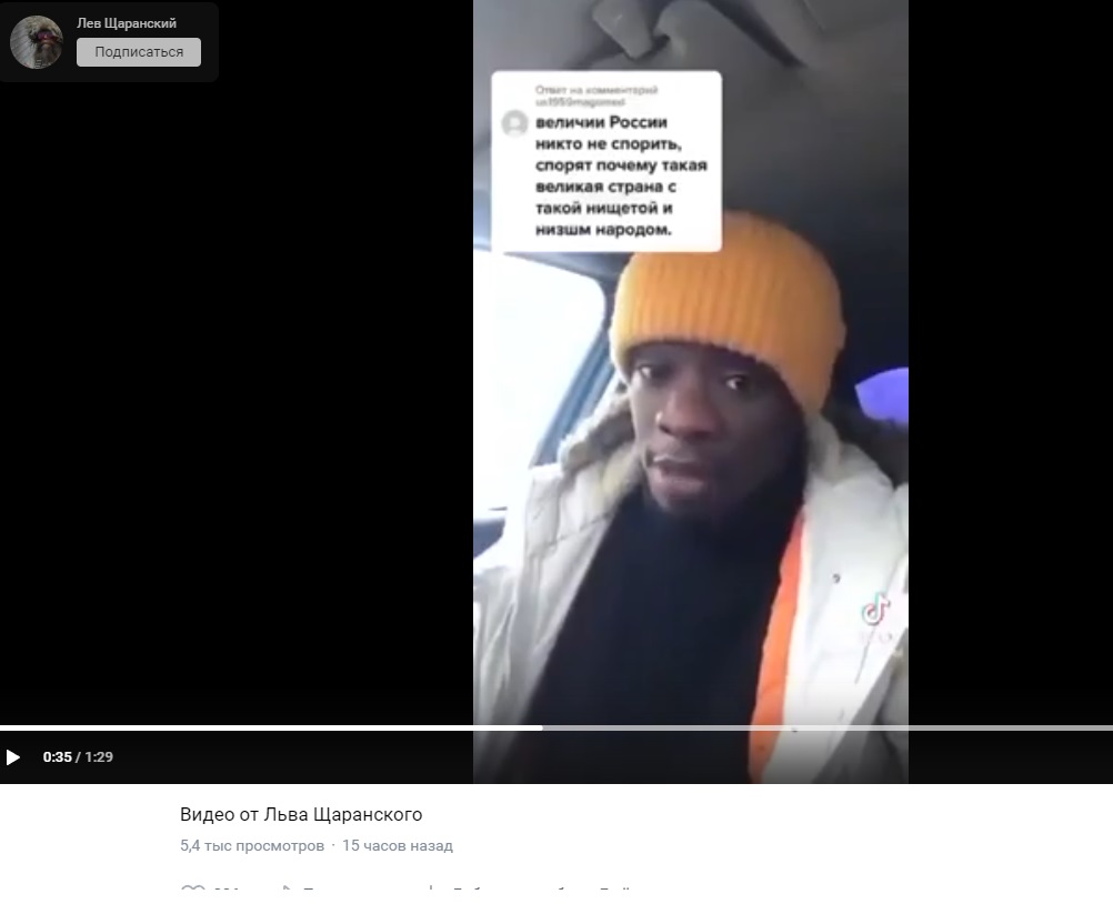 В социальных сетях вирусным стало видео, где чёрный парень на чистом русском языке объясняет нам, что стыдно при возможностях, имеющихся в России, говорить, будто вы плохо живёте. Речь там настолько эмоциональная, что Роскомнадзор её точно не пропустит. Поэтому нам придётся процитировать паренька и добавить пару скриншотов его выступления: