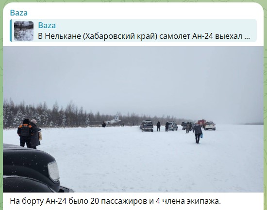 Очередное происшествие с самолётом произошло в хабаровском посёлке Нелькан Аяно-Майского района. Именно здесь Ан-24, следовавший рейсом Нелькан – Хабаровск, не смог взлететь и выкатился за пределы взлетно-посадочной полосы. Затормозить ему удалось только близлежащих кустах.