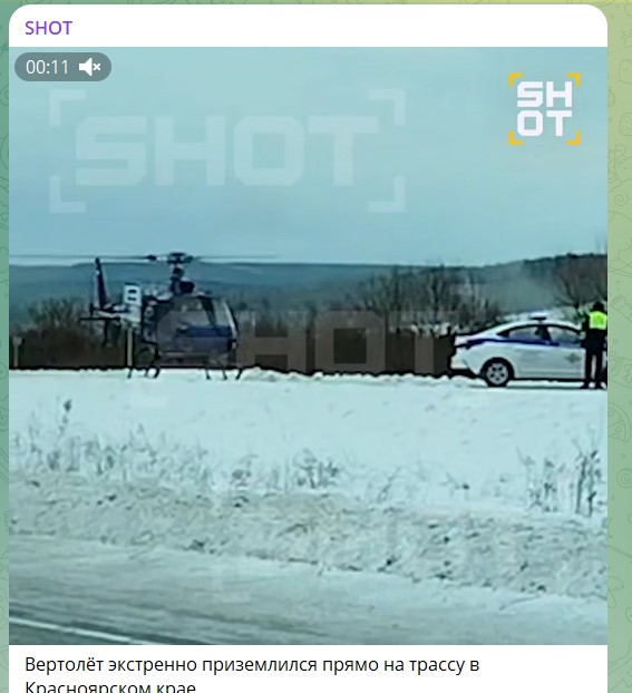 ЧП под Красноярском: Вертолёт экстренно приземлился прямо на трассу
