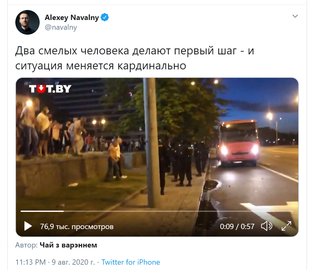 23:06 В телеграм-канале NEXTA, который ведёт из Польши студент Степан Путило, призывают белорусов вставать в сцепки против силовиков. Толпу подначивают призывами "Нужно выходить на улицы и защищать свои голоса!" Для пущего эффекта автор добавляет скрины бюллетеней с избиркомов, где победила Светлана Тихановская.