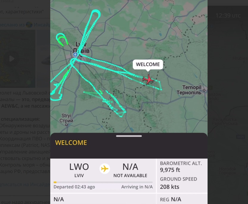 Самолет над Львовской областью, о котором пишут тг-каналы – это, предварительно, борт ДРЛО Saab 340 AEW&C, а не пассажирский самолет.