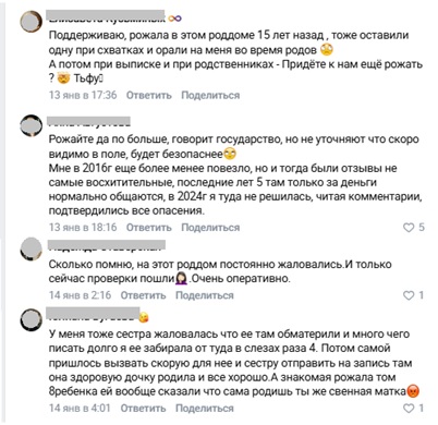 Скриншот отзывов о роддоме №1 в Новокузнецке