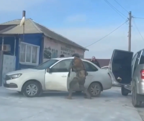 Из микроавтобуса, который припарковался рядом с "Ладой", выскакивают бойцы в камуфляже.