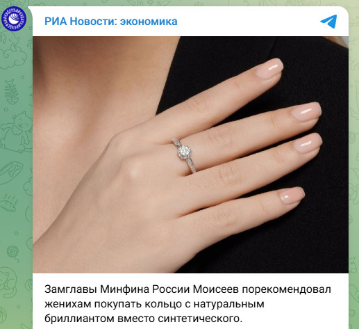Упомянул он и о заместителе министра финансов Силуанова. Алексей Моисеев совершенно серьёзно заявил, что для сохранения семьи нужно покупать натуральные бриллианты, а не синтетические.