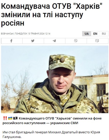 Кроме того, президент Украины Владимир Зеленский назначил новым командующим группировкой ВСУ в Харькове Михаила Драпатого. Это говорит о том, что в Киеве всерьёз оценивают риски и прекрасно понимают, что происходит.