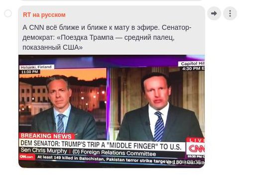 В эфире CNN сенатор-демократ от штата Коннектикут Крис Мерфи едва сдержался, чтобы не ругнуться матом. Свое отношение к поездке Трампа он коротко обозначил одним похабным жестом. Редакторы телеканала скромно процитировали оценку конгрессмена: «Поездка Трампа - средний палец, показанный США».