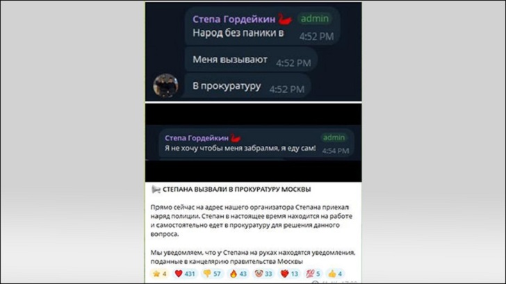 История с одним из приглашений на беседу в прокуратуру. Скриншот: аккаунт, связанный с проектом "Алый лебедь"