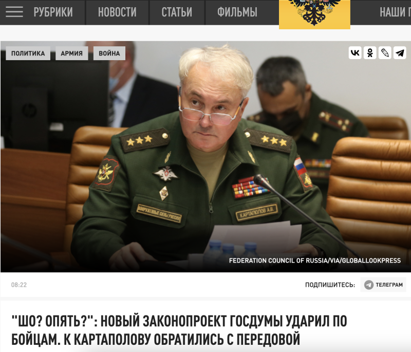 Новый законопроект Госдумы ударил по бойцам, считают авторы телеграм-канала "Два майора". Авторы обратились с передовой к председателю Комитета Госдумы по обороне Андрея Картаполову, объяснив, чем грозит данная инициатива.