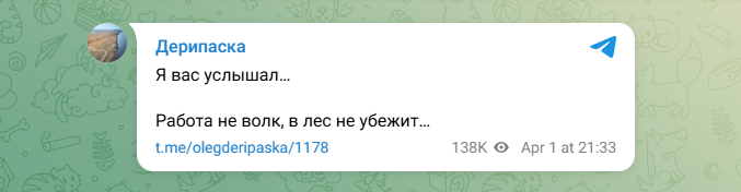 ФОТО: Скриншот https://t.me/olegderipaska