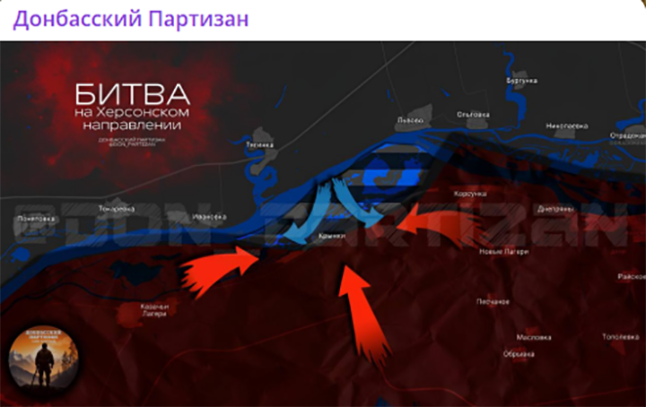 ОЖЕСТОЧЁННЫЕ БОИ ЗА КРЫНКИ НЕ СТИХАЮТ С ЛЕТА. СКРИН ТГ-КАНАЛА "ДОНБАССКИЙ ПАРТИЗАН"