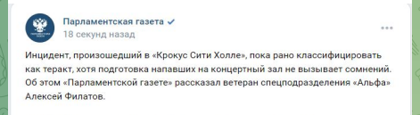 Не менее поражает и поведение "Парламентской газеты", которая и вовсе назвала теракт "инцидентом" и уточнила, что расценивать трагедию как террористический акт ещё рано.