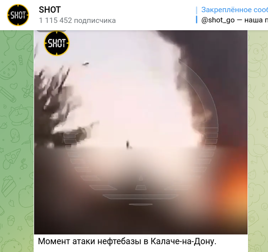 Несколько беспилотников атаковали город Калач-на-Дону в Волгоградской области. По информации SHOT, взрывы начали греметь в городе в районе 4 утра. Местные жители насчитали их около десятка. После этого начался пожар в районе нефтебазы, чёрный столб дыма был виден из разных районов города.