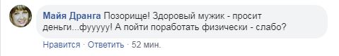 "Позорище! Здоровый мужик - просит деньги... А пойти поработать физически - слабо?" – спрашивает Майя Дранга.