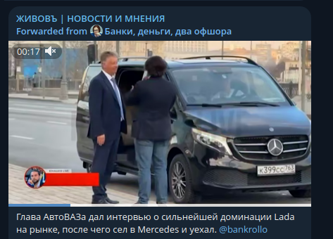 А когда интервью закончилось, мужчина сел в чёрный "Мерседес" и уехал. Тот факт, что директор АвтоВАЗа выбирает для себя иномарку, многих возмутил. Казалось бы, что в этом такого? Человек вправе ездить на том, что ему нравится. Но в этой истории есть нюанс, который не ускользнул от внимания наблюдателей.