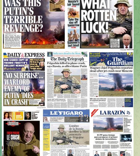 08:54. "Месть Путина", "Ужасная месть Путина", "Враг Путина погиб в авиакатастрофе". Западные СМИ отряхнули пыль с методичек и разразились одинаковыми заголовками на обложках, рассказывая о крушении самолёта Пригожина. Слово в слово. Такого феерического распространения фейков мир не знал со времён крушения малайзийского "Боинга" МН17 и отравления Скрипалей.